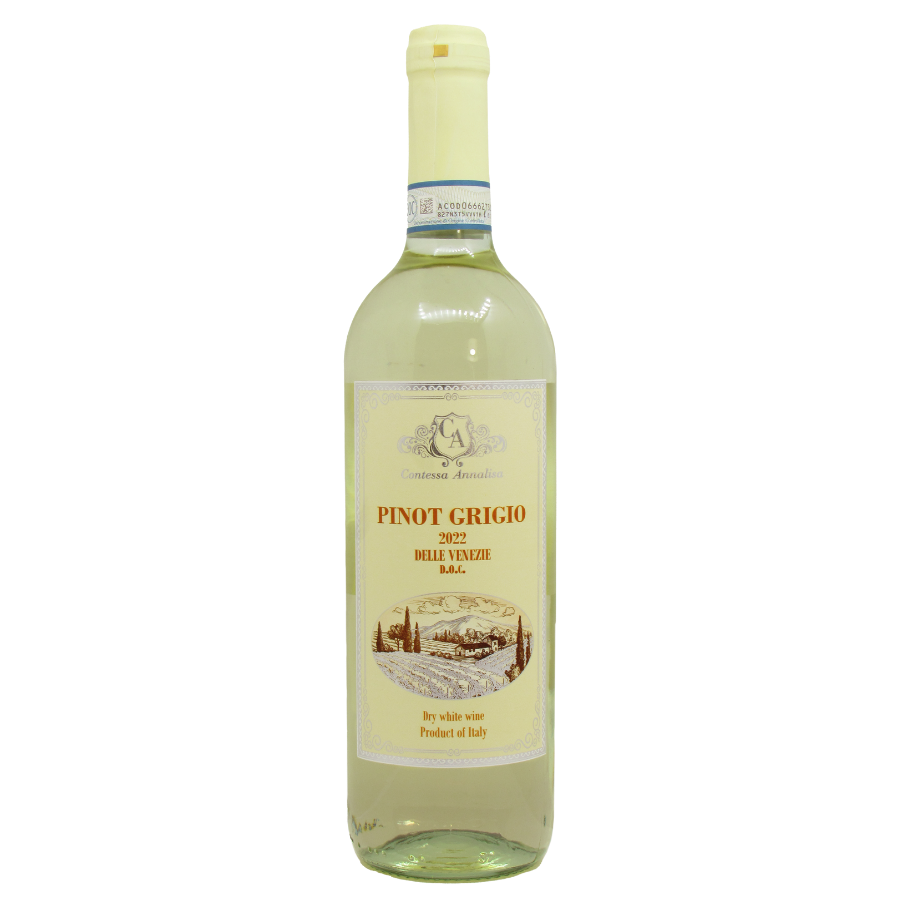 HomeWine KosherContessa Annalisa Pinot Grigio 12/750mlContessa Annalisa Pinot Grigio 12/750ml Contessa Annalisa Pinot Grigio 12/750ml Description Delivery Info Reviews (0) Description Contessa Annalisa Pinot Grigio 12/750ml Standard and Express delivery services are available for all items. Shipping costs are calculated at the checkout page (after delivery option & destination confirmation). Tracking is available for all delivery options. Items are delivered during standard business hours. Reviews There are no reviews yet. Be the first to review “Contessa Annalisa Pinot Grigio 12/750ml” Cancel replyYour email address will not be published. Required fields are marked *Name * Email * Save my name, email, and website in this browser for the next time I comment. Your rating * Rate… Perfect Good Average Not that bad Very poor Your review * I agree that my submitted data is being collected and stored. Related products Tishbi Vineyards Cabernet Sauvignon 12/750ml Read more Tishbi ESTATE Cabernet Sauvignon 12/750ml Read more Twin Suns Buttery Chardonnay 2024 12/750ml Read more Tishbi Vineyards Sauvignon Blanc 12/750ml Read more Twin Suns Sauvignon Blanc 2024 12/750ml Read more